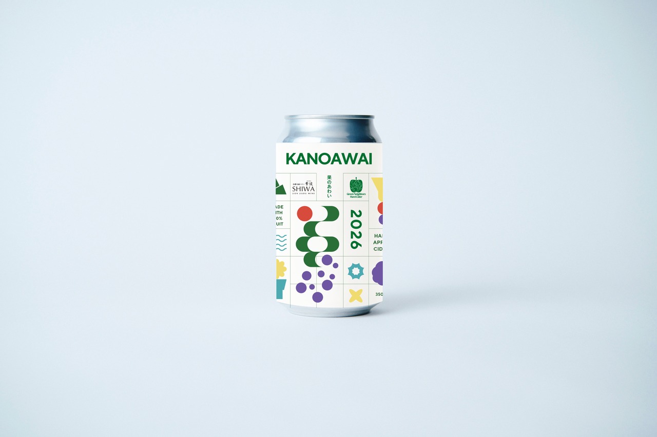 【KANOAWAI 果のあわい】は、岩手県紫波町にワイナリーを構える『自園自醸ワイン紫波』とのコラボレーションから造り上げたフルーツサイダー。岩手県産りんごに、紫波町内で育てられた「マスカット・ベーリーA」を重ね、同じ土地で実ったふたつの果実をひとつにしました。りんごの澄んだ酸と、マスカット・ベーリーA由来のやわらかな果実味が折り重なり、奥行きのある味わいに。『共宴シリーズ』の第二弾として造られた、限定醸造のフルーツサイダーです。
