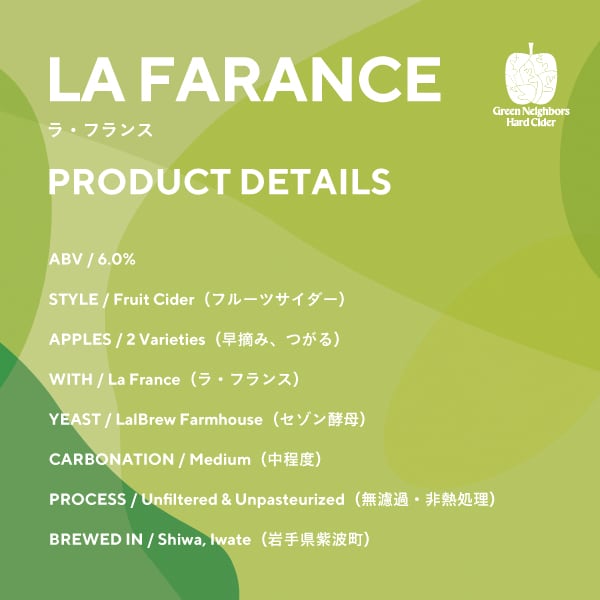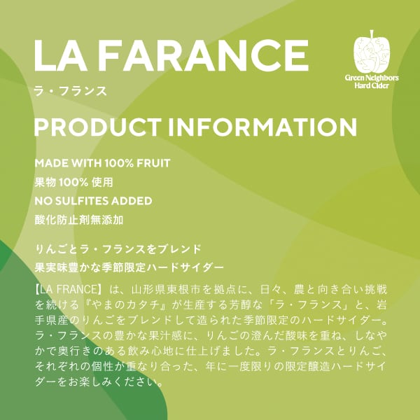 山形県東根市を拠点に、日々、農と向き合い続ける『やまのカタチ』 @yamano_katachi が育てた「ラ・フランス」を使用した、季節限定のフルーツサイダーです。
